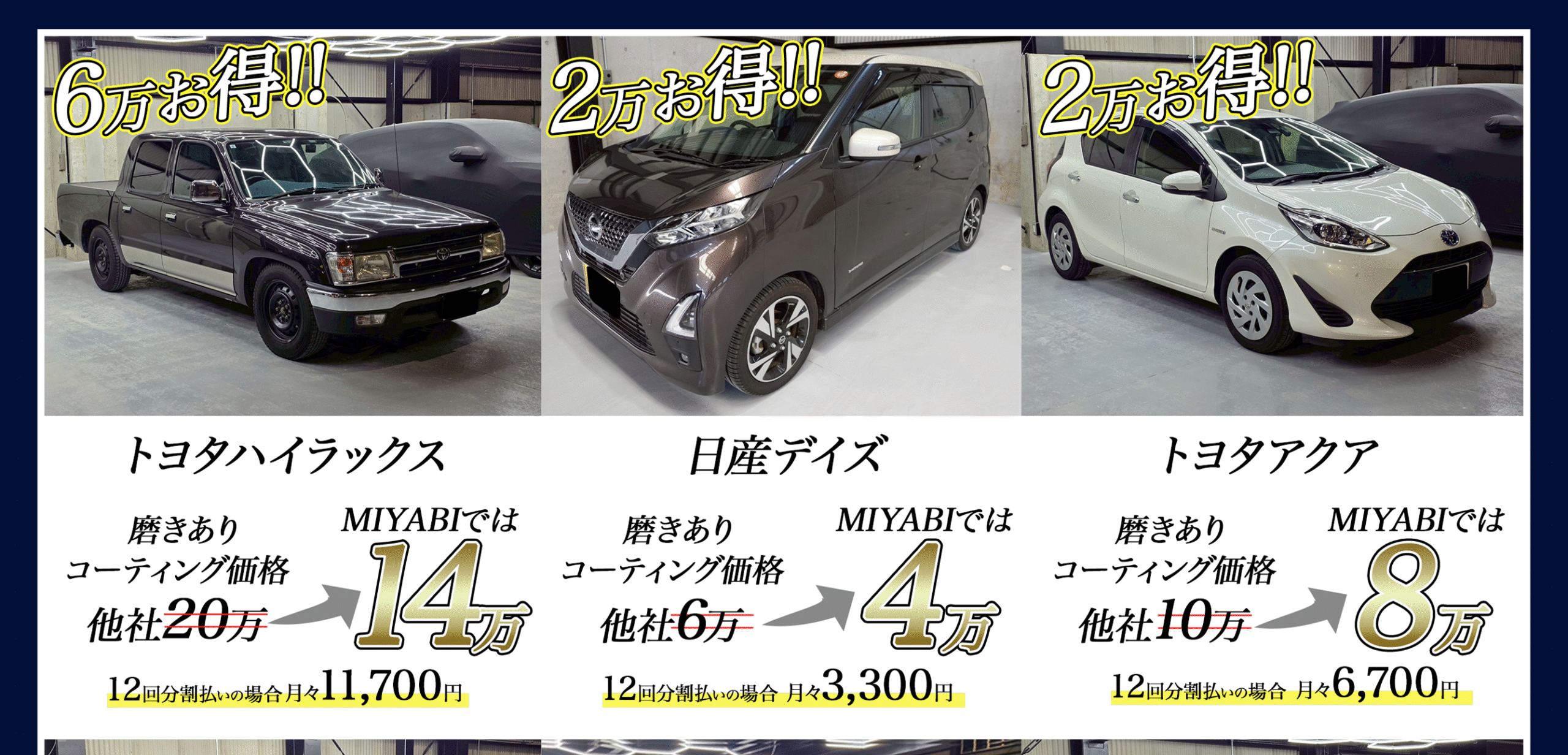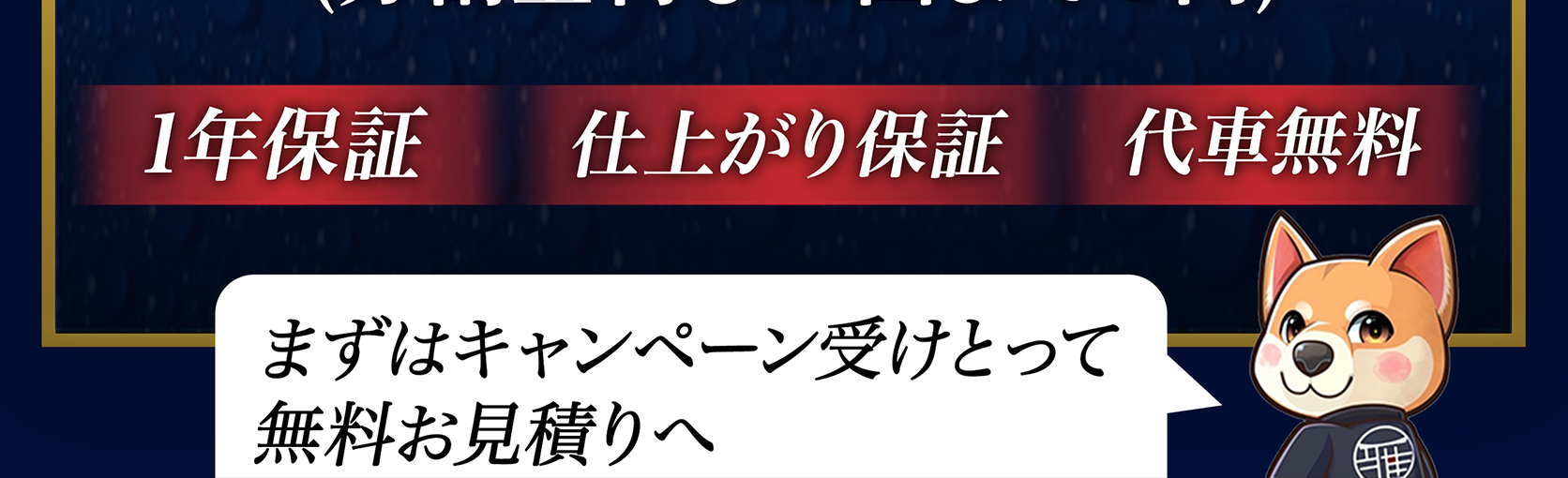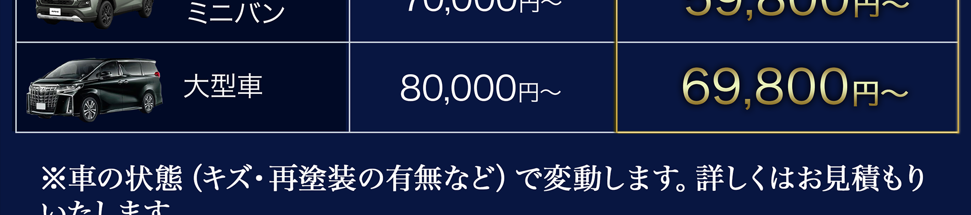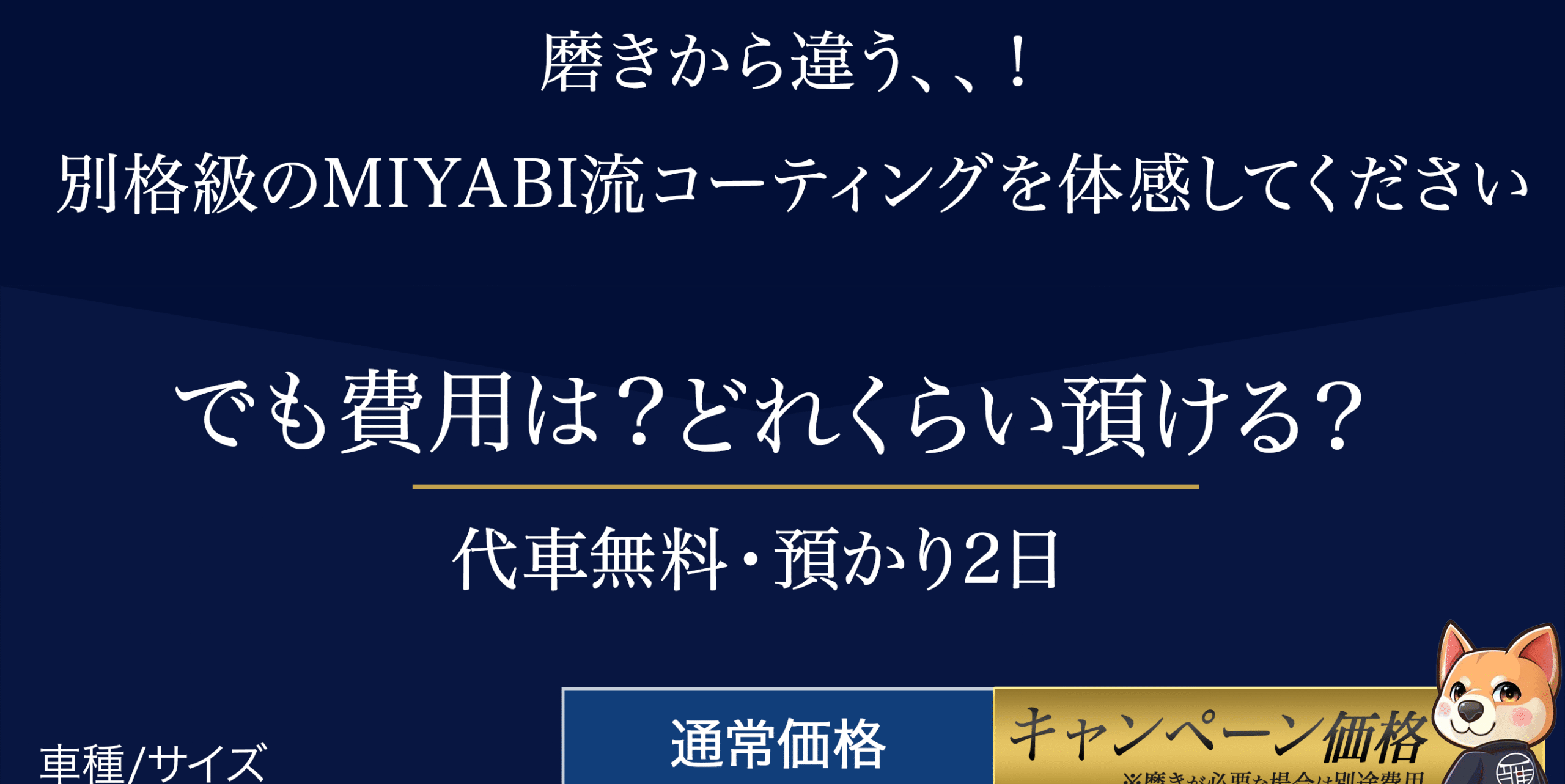 軽〜セダンで最短当日、こだわり研磨は1〜2日が目安。“代車無料(要予約)”をご用意しています。