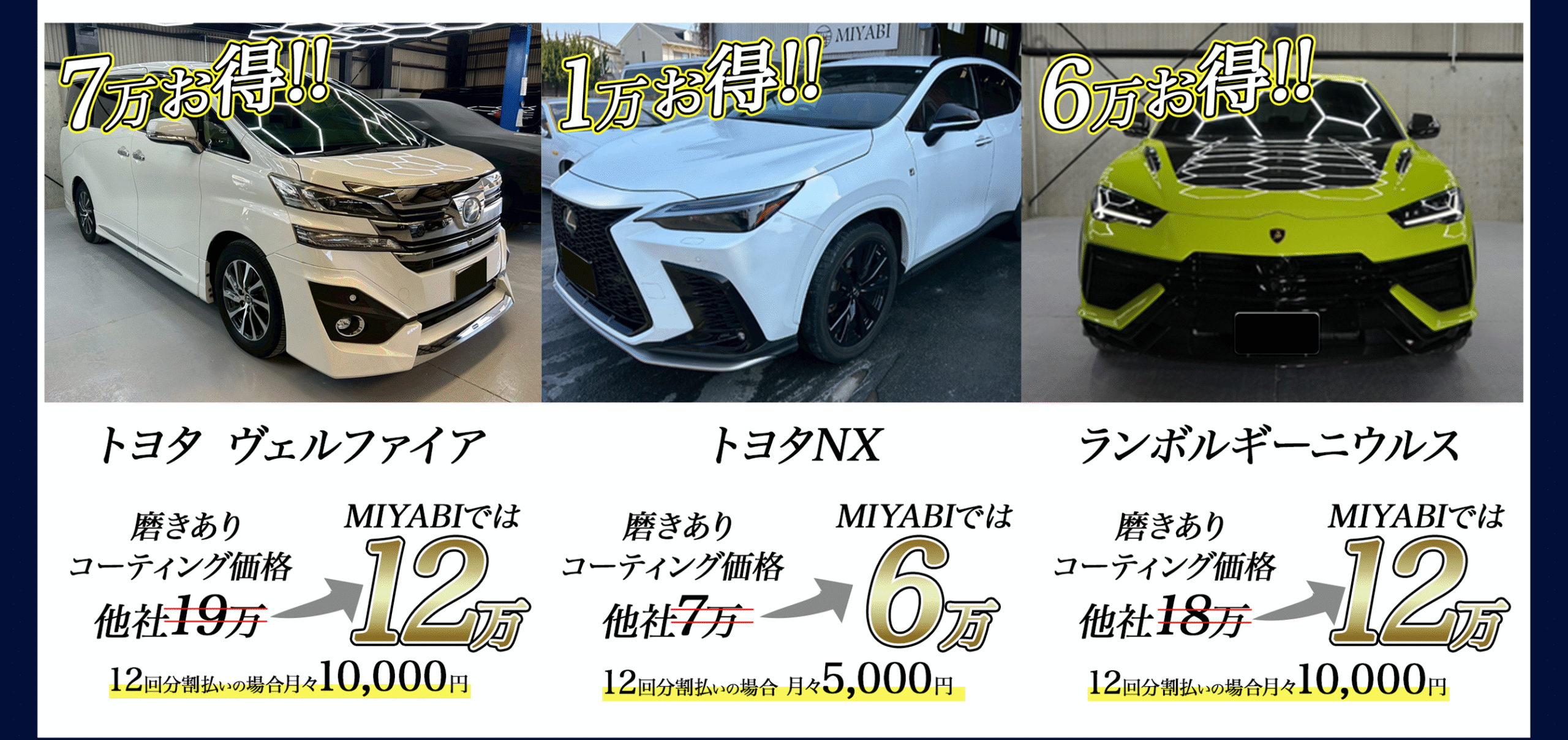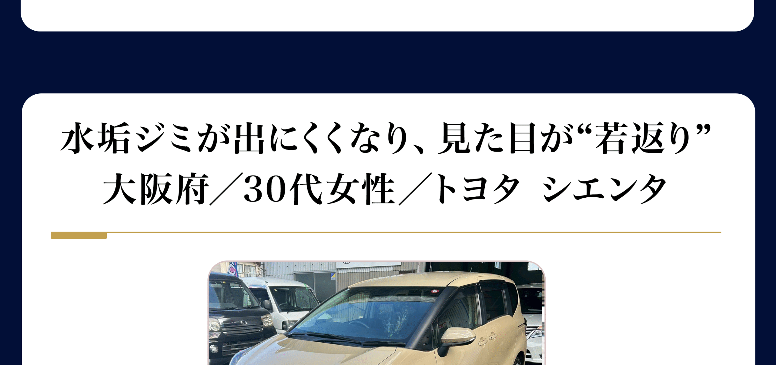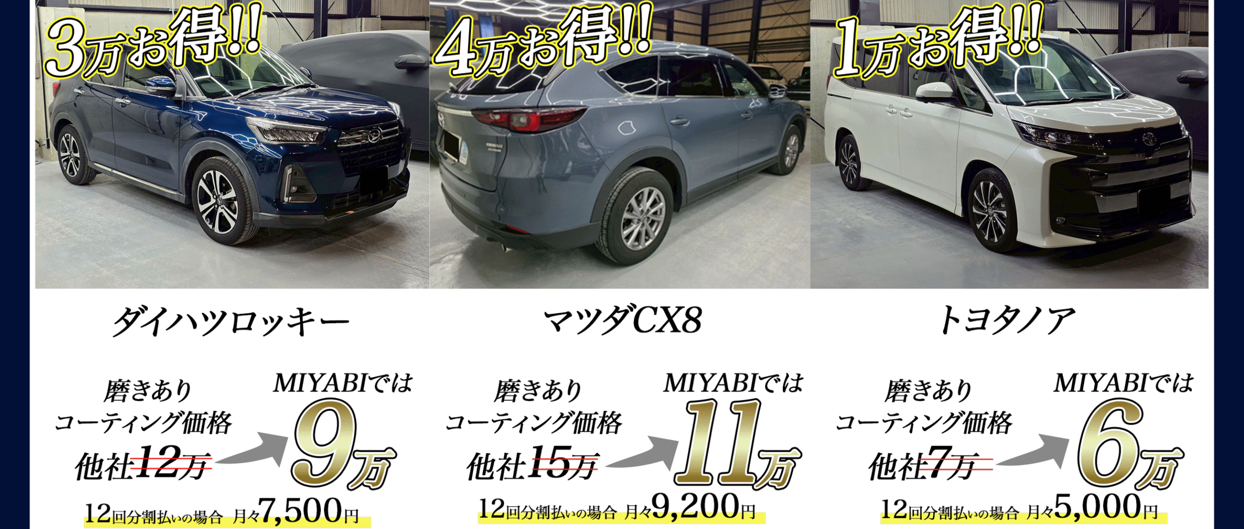 軽〜セダンで最短当日、こだわり研磨は1〜2日が目安。“代車無料(要予約)”をご用意しています。