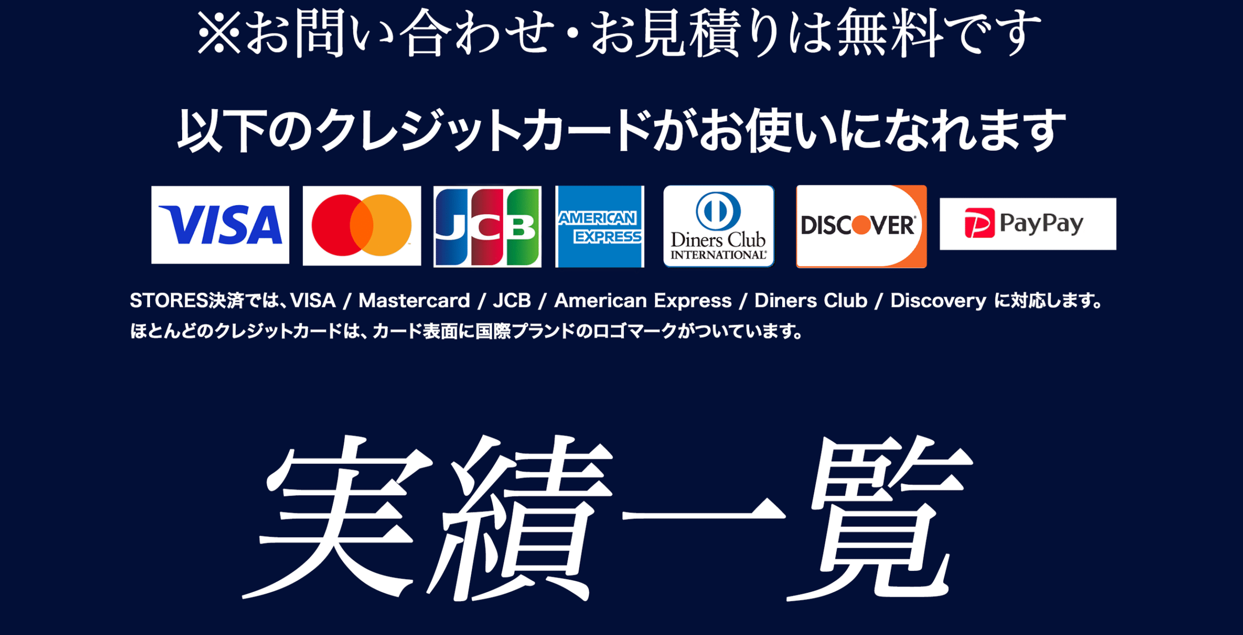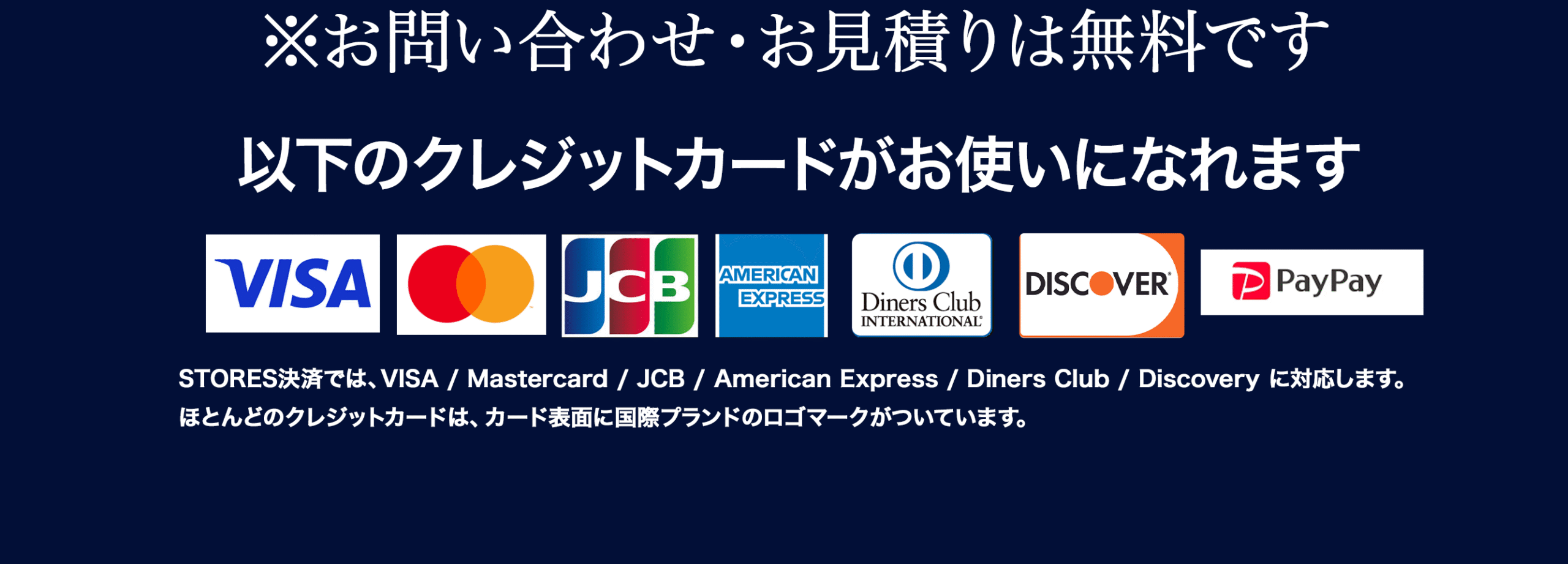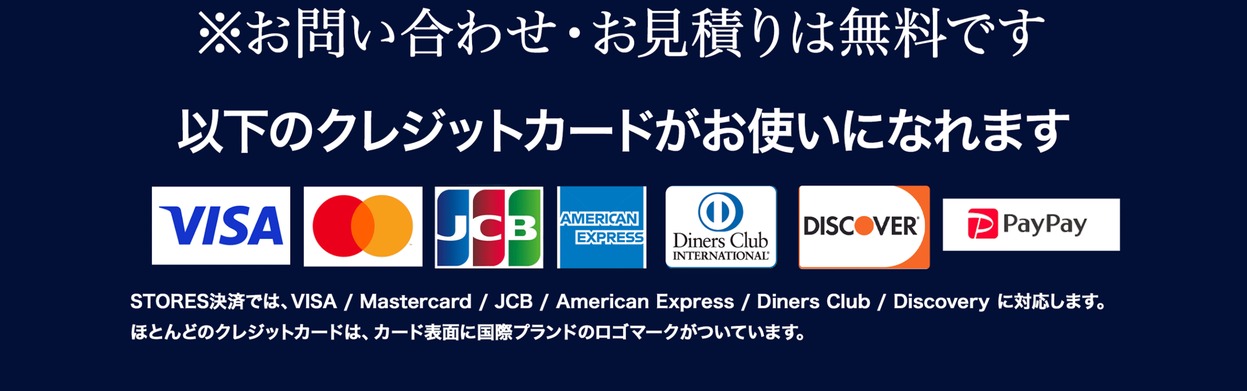 現金・各種クレジットカード・銀行振込・分割払いに対応。分割は月々3,500円〜/金利0円(審査あり)。お見積り時に分割シミュレーションをご案内します。