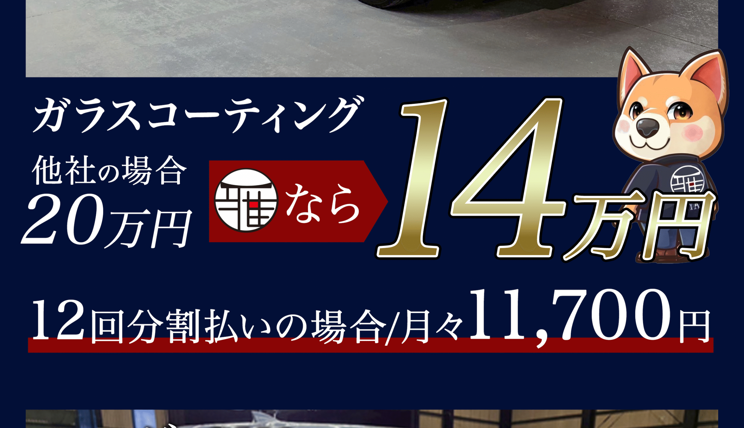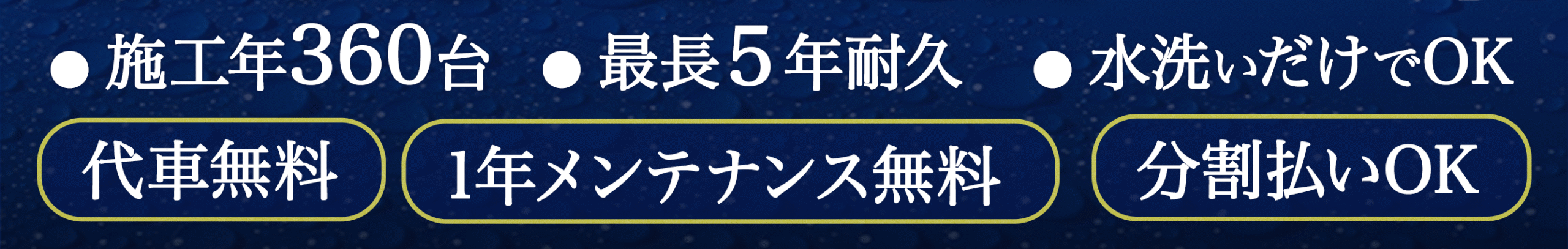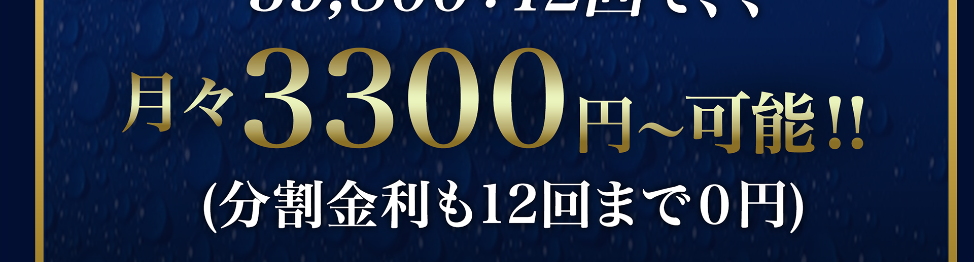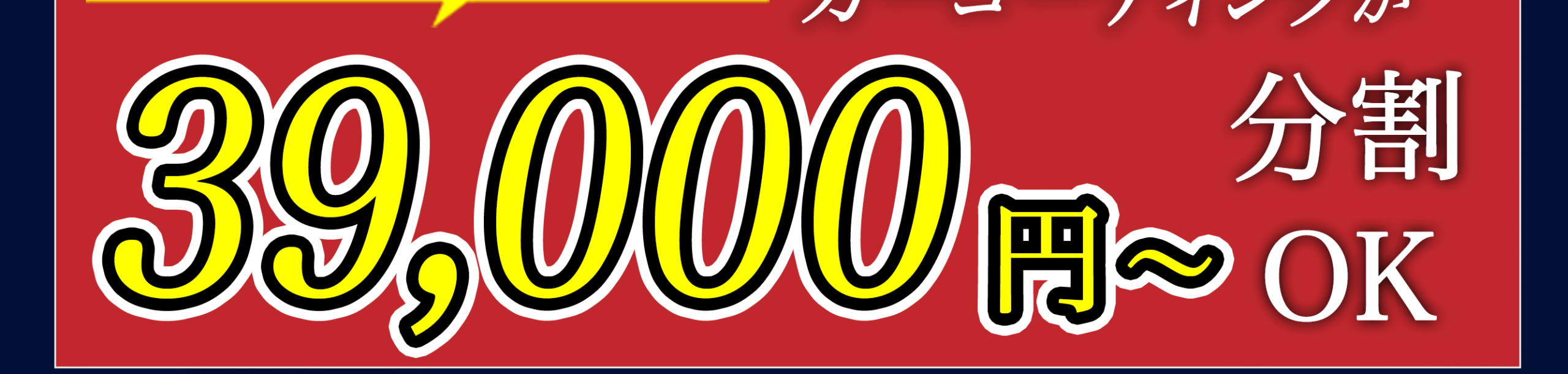 現金・各種クレジットカード・銀行振込・分割払いに対応。分割は月々3,500円〜/金利0円(審査あり)。お見積り時に分割シミュレーションをご案内します。